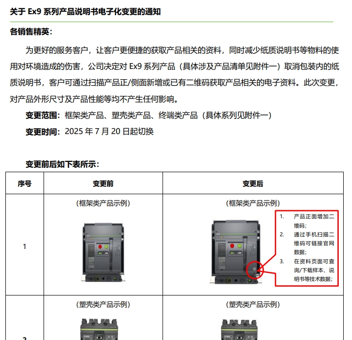 關(guān)于 Ex9 系列產(chǎn)品說明書電子化變更的通知